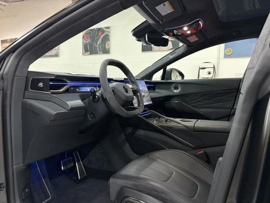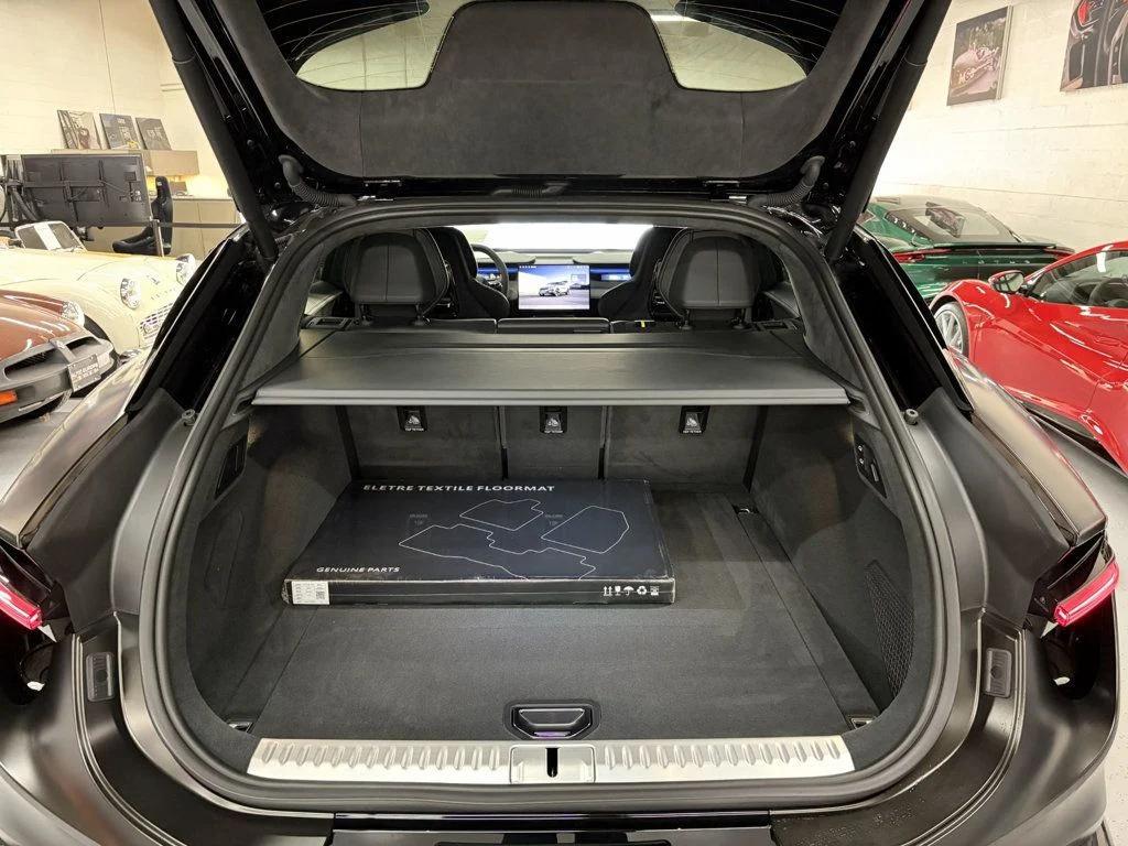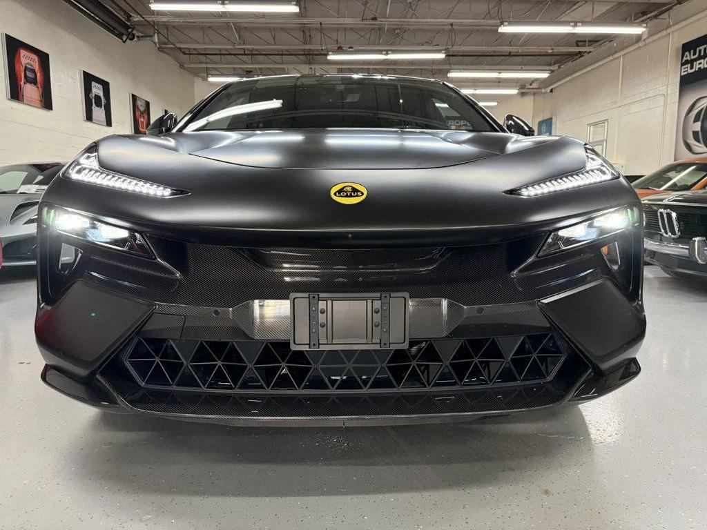 Brand new 2025 Lotus Eletre Carbon now available for purchase! Spec and options as follows: Options: Stardust Black Exterior Paint Exterior Extended Carbon Pack LOTUS Wordmark Satin Chrome 23 Multi-Spoke Gloss Black Wheels Green Brake Calipers Bridge of Weir Black Interior Theme Comfort Seating Pack Interior Carbon Pack Dark Tri-Color Seatbelts Privacy Glass Intelligent Glass Roof Battery and Drivetrain: 905 Horsepower Dual Motor, All Wheel Drive 22kW On-Board AC Charger 800V, 112kWh Lithium-Ion Battery Pack 2-Speed Transmission Infotainment: 23-Speaker KEF Reference Audio Wireless Apple CarPlay and Android Audio 29-inch Heads-Up Display 15.1-inch HD OLED HMI Touchscreen Safety and Security: Highway Assist Pack (with LiDAR) Adaptive Cruise Control Visual Park Assist Driver Monitoring System For more information, and inquires please contact Nathan Schick at (248)645-6300 or by email at nathan@autoeuropesales.com Air Conditioning, Climate Control, Dual Zone Climate Control, Cruise Control, Tinted Windows, Power Steering, Power Windows, Power Door Locks, Power Mirrors, Leather Steering Wheel, Power Drivers Seat, Power Passenger Seat, Heated Seat, Rear Air Conditioning, Clock, Homelink System, Telescoping Steering Wheel, Steering Wheel Radio Controls, Sunroof, Moonroof, Driver Airbag, Passenger Airbag, Side Airbags, Keyless Entry, Security System, Rear Defogger, Intermittent Wipers, AM/FM, KEF Premium Sound System, Full Leather Interior Surface, 12v Power Outlet, Adaptive Cruise Control, Adaptive headlights, Air Conditioned Seats, Android Auto, Apple CarPlay, Automatic High Beams, Aux. Audio Input, Birds Eye View Camera, Blind Spot Monitor, Bluetooth, Carbon Fiber Trim, Carpeted Floor Mats, Center Arm Rest, Center Console, Child Proof Door Locks, Collision Avoidance System, Cup Holders, Daytime Running Lights, Electronic Trunk Closer, Forward Collision Warning, Front AC Seats, Front Heated Seats, Heads Up Display, Heated Mirrors, Heated Steering Wheel, Lane Departure Warning, Lane Keep Assist, Luxury Seats, Navigation System, Overhead Console, Parking Sensors, Power Lift Gate, Premium Sound, Premium Wheels, Rain Sensing Wipers, Rear AC Seats, Rear Heated Seats , Rear Radio Control, Rear Spoiler, Rear Spoiler, Rear-Side Airbags, Remote Fuel Door, Remote Start, Reverse Camera, Roll Stability Control, Side Curtain Airbags, Sliding Rear Window, Tire Pressure Monitor, Vanity Mirrors -
